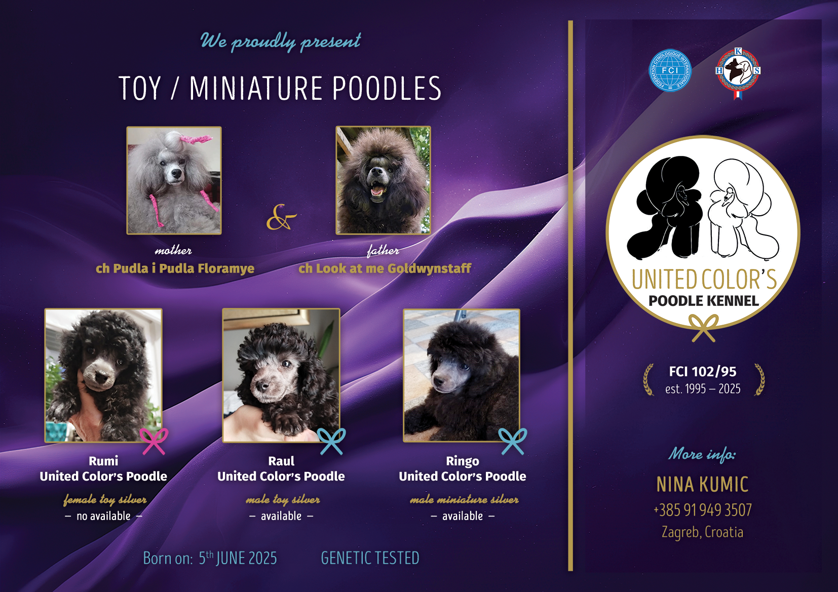 Uzgajivačnica pudla "United Color's Poodle" ove godine slavi 30 godina postojanja i tom prigodom predstavlja leglo "R" i štence sivih toy/patuljastih pudla: